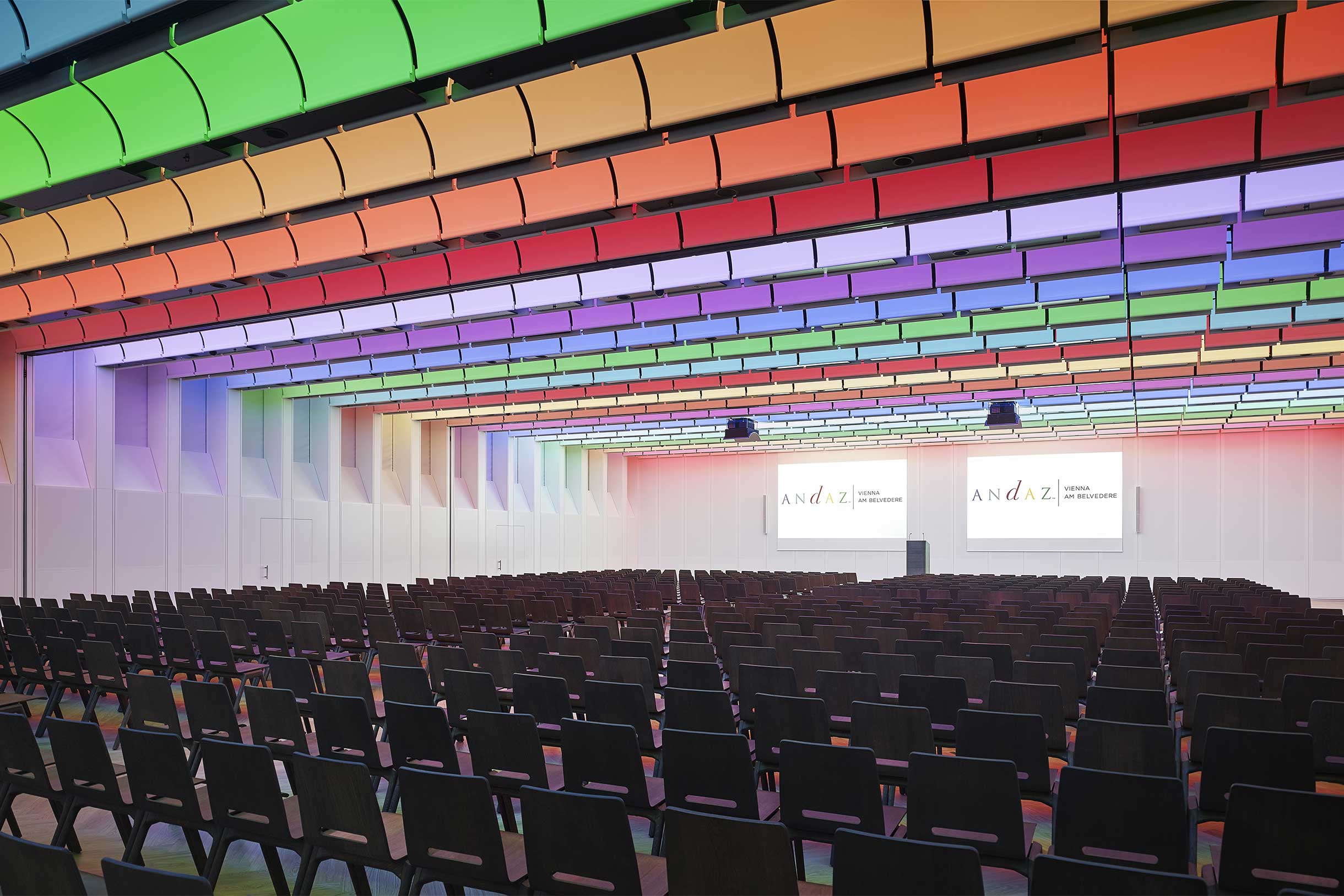 Schon beim Betreten der Hotellobby spürt man den „etwas anderen“ Stil des Hausherren! Während die Außenarchitektur eher kühl anmutet, ist das Interieur in warmen Tönen, mit moderner Kunst, sehr gemütlich und einladend gestaltet. Der gedachte Hausherr im neuen Andaz Vienna ist allerdings nicht die historische Figur, sondern sein fiktiver zeitgenössischer Nachfahre: nämlich Eugen 21. Wie schon sein Vorfahre ist auch er Kunstmäzen, Architekturliebhaber und Sammler. Mit ihm gemein ist ihm seine Liebe zu Luxus und Design sowie ein wenig Eitelkeit. So stehen auch im Hotel zeitgenössische Architektur, Kunst und Kulinarik im Zentrum des touristischen Angebotes. Präsentiert wird folglich ein für alle Sinne angedachtes Gesamterlebnis, das sowohl von Hotelgästen als auch von der lokalen Wiener Bevölkerung bespielt und genutzt werden kann.