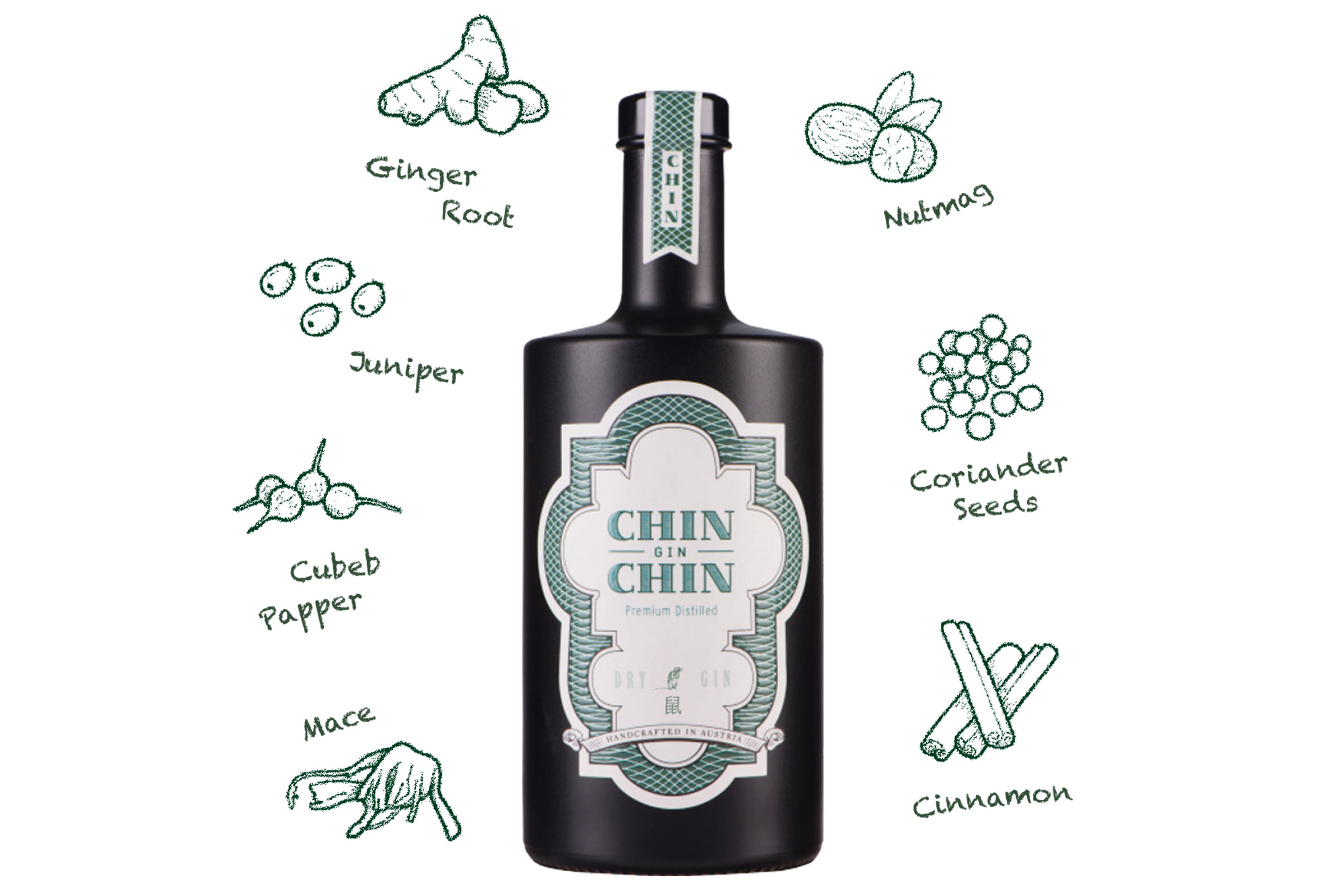 OST TRIFFT WEST. Chin Chin Gin basiert auf einer speziellen Rezeptur aus chinesischen Zimtstangen, gemahlener Muskatnuss, Ingwerwurzel, Koriandersamen, gepressten Wacholderbeeren und – das Tüpfelchen auf dem i – Kubebenpfeffer. Diese außergewöhnliche Mischung verleiht dem Gin eine kernige Schärfe und eine raffinierte Dominanz im Abgang. Möglich wird diese herausragende geschmackliche Qualität durch ein einzigartiges, schonendes Vakuum-Destillierverfahren bei niedriger Temperatur, das die zugesetzten hochwertigen Botanicals nicht übertönt, sondern gekonnt unterstreicht und hervorhebt.
