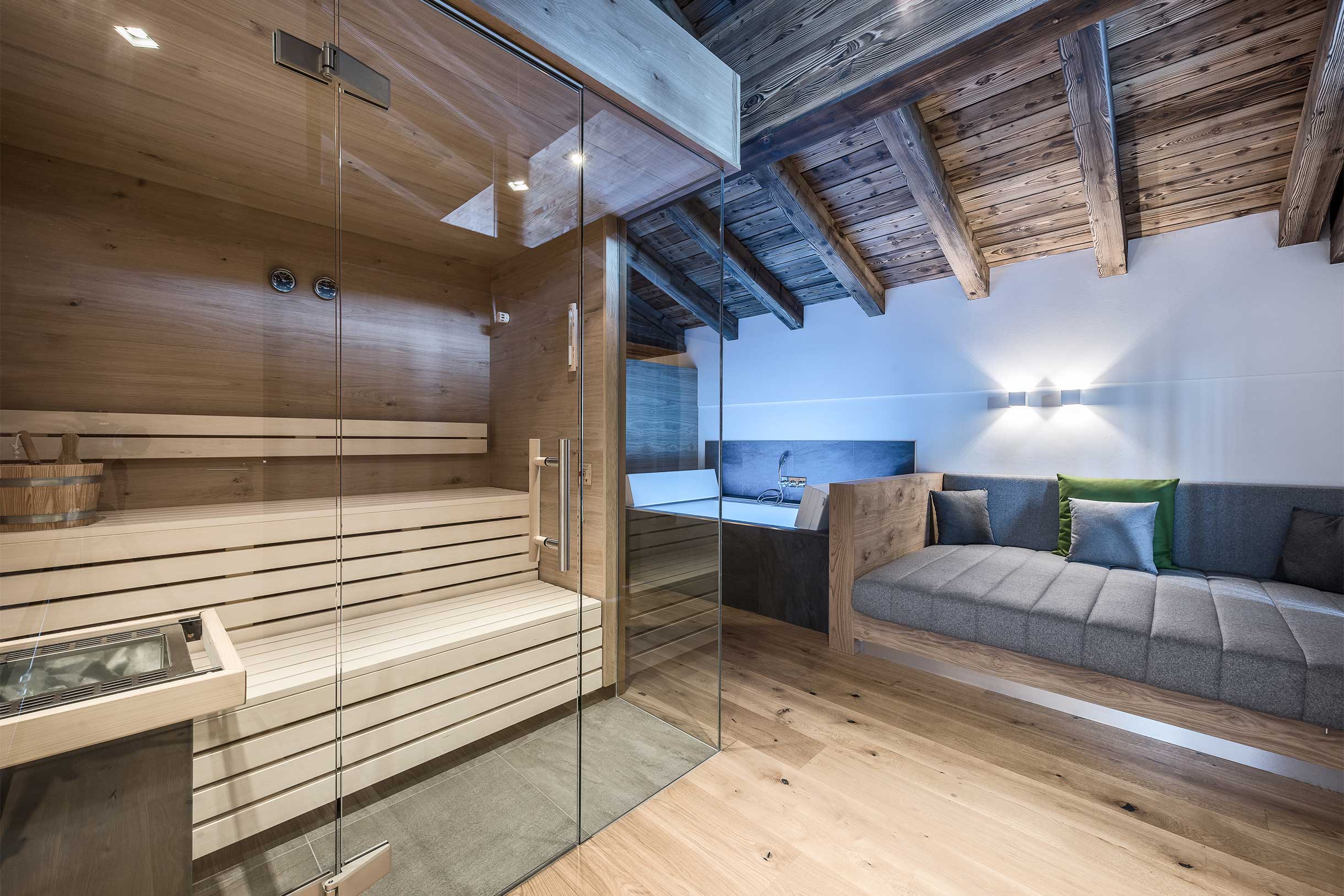 Der begehrteste Kraftplatz nach einem langen Winter-Aktivtag in den Bergen ist das Badhaus INNERE MITTE: eine romantische Berghütte an einem klaren Natursee mit 360°-Himmelsblick und vier verschiedenen Themensaunen. Für Abkühlung nach einem anregenden Saunagang sorgen der Außenbereich mit seinem Latschenkiefer- und Steingarten sowie die frische Bergluft.
